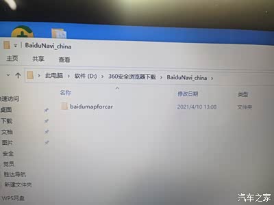 上图是压缩包和解压后的文件夹 因为现在压缩包都会在解压时候自动生成一个和压缩包一样的文件夹 这个文件夹不要直接拷贝到U盘 车机系统不认 一定要进入这个文件夹拷贝《baidumapforcar》文件到U盘根目录下如图
