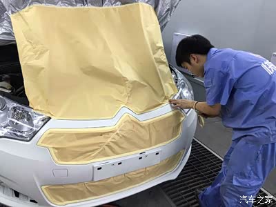 开始贴遮蔽纸,说是为了防止飞漆。贴护都花了近半个小时,师傅说细节必须要处理好。点赞![]()