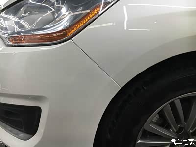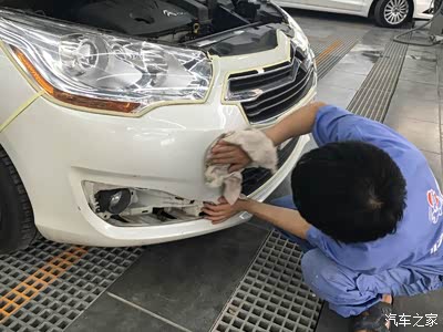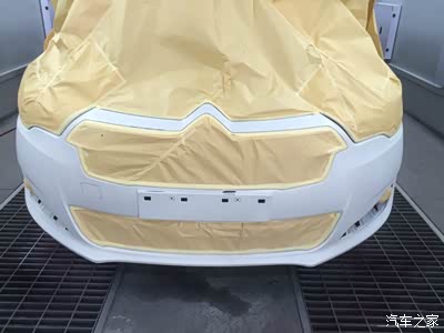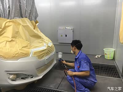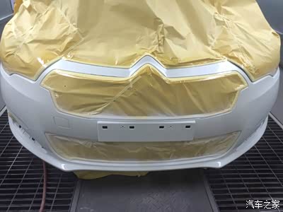 用抹布擦拭干净,检查到保险杠上有许多因小石子溅起的凹槽,师傅说要先补合金灰(他说是进口的)。