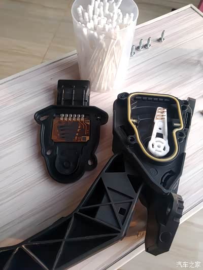 首先自我排查电子油门及刹车开关。 电子油门拆下来看确实感觉磨损痕迹严重(磨损痕迹让我瞬间联想起到小时候玩的插卡(魂斗罗)游戏机,打游戏卡顿了拿出来用酒精擦拭一下又完美了)