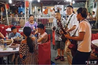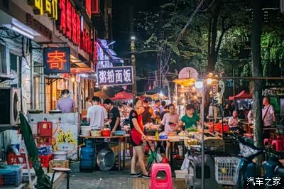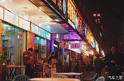 前进二路是大排档的天下,华灯初上,道路两边的店家开始忙碌,支起帐篷或是直接露天,扯出电线挂上灯泡,一个临时的摊点就弄好了