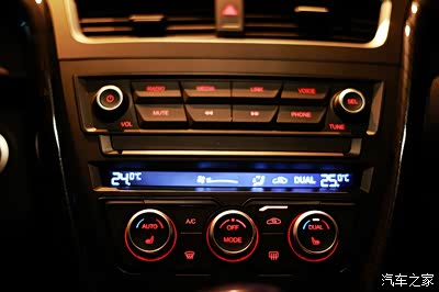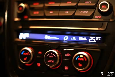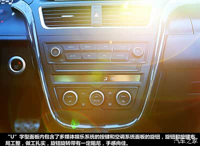 “U”字型面板内包含了多媒体娱乐系统的按键和空调系统面板的旋钮,旋钮和按键布局工整,做工扎实,旋钮旋转带有一定阻尼,手感尚佳。