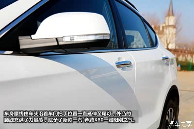 车身腰线由车头沿着车门把手位置一直延伸至尾灯,外凸的腰线充满了力量感,赋予了新款一汽-奔腾X80一股阳刚之气。