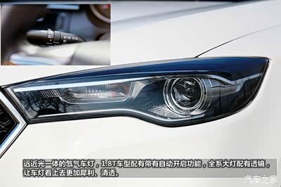 远近光一体的氙气车灯,1.8T车型配有带有自动开启功能,全系大灯配有透镜,让车灯看上去更加犀利、清透。