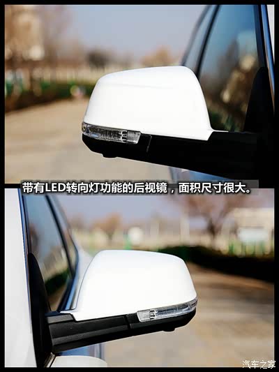带有LED转向灯功能的后视镜,面积尺寸很大。