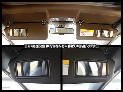 主副驾驶位遮阳板内侧都配有带化妆灯功能的化妆镜。