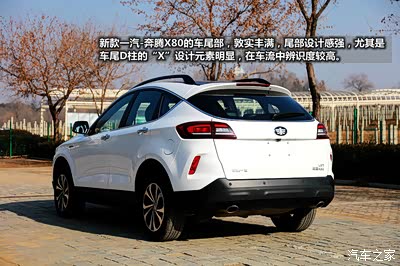 新款一汽-奔腾X80的车尾部,敦实丰满,尾部设计感强,尤其是车尾D柱的“X”设计元素明显,在车流中辨识度较高。