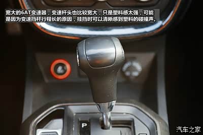 宽大的6AT变速器,变速杆头也比较宽大,只是塑料感太强,可能是因为变速挡杆行程长的原因,挂挡时可以清晰感到塑料的碰撞声。