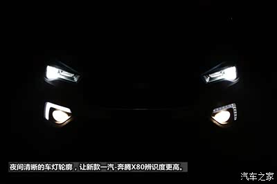 夜间清晰的车灯轮廓,让新款一汽-奔腾X80辨识度更高。