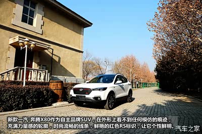 新款一汽-奔腾X80作为自主品牌SUV,在外形上看不到任何模仿的痕迹,充满力量感的轮廓,时尚流畅的线条,鲜艳的红色RS标识,让它个性鲜明。