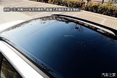 新款一汽-奔腾X80车顶为黑色,配备了天窗但不是全景的。