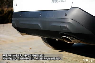 双边单排的排气孔,采用半斜椭圆造型,动感带有活力,四颗倒车雷达,保证倒车时精准的提示。
