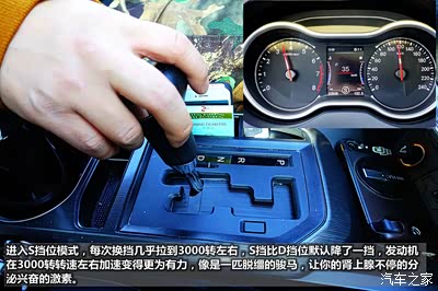 进入S挡位模式,每次换挡几乎拉到3000转左右,S挡比D挡位默认降了一挡,发动机在3000转转速左右加速变得更为有力,像是一匹脱缰的骏马,让你的肾上腺不停的分泌兴奋的激素。