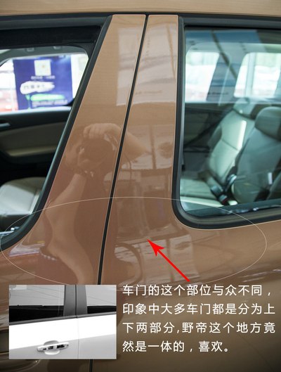 非常喜欢野帝车门这个部位,和其他车不一样,车门上下是一个整体看着很舒服。