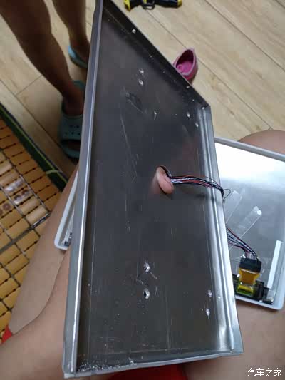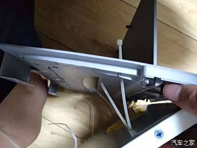 穿线才是最痛苦的事情,胳膊被划坏了多处,不建议身体胖胳膊粗的人操作,空间太小了。这里还有一个插曲,希望大家注意:开始用的HDMI接头,结果驱动板固定好同车内的梁干涉,我想着只要装好了就不拆了就硬装进去了,结果驱动板上的HDMI直接被掰掉了,高清线和高清头都不用了,这个痛心。主要是还得花钱买DVI线和转接头,多花一百块钱。在马云家买了一个一百五的机顶盒配在车里用。