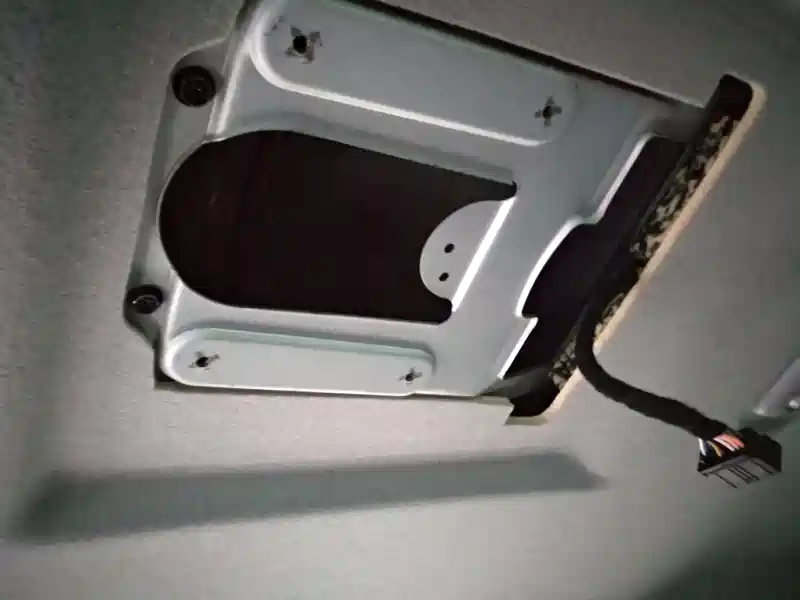 显示线和音频线单独走,音频线走左侧B柱到中间扶手箱里。视频线走右侧的B柱下到副驾驶座位下方。