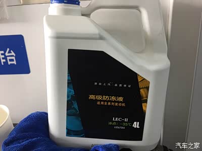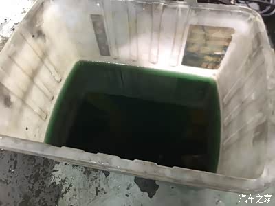 放出来好多防冻液,我说蛮干净啊,蛮好不用换的,师傅告诉我防冻液是看冰点的,颜色就是一种标记,还有如果漏水看得清楚!