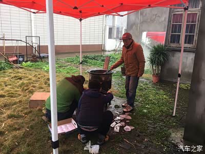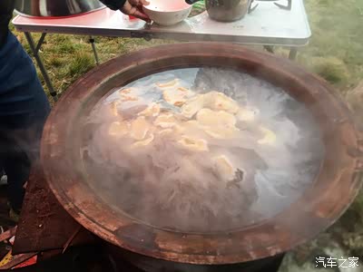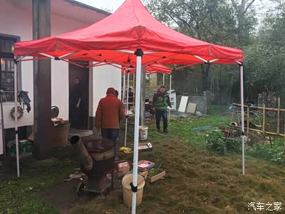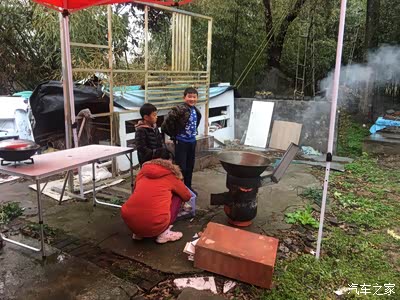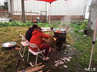 因为绵绵细雨,搭了两个大帐篷,这样就淋不到雨了,专业吧!更专业的是这个炉子,看到过吗,这是两个钢圈做的哦!火力旺,烧菜还香!今天用它先煮一锅鸡汤!