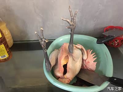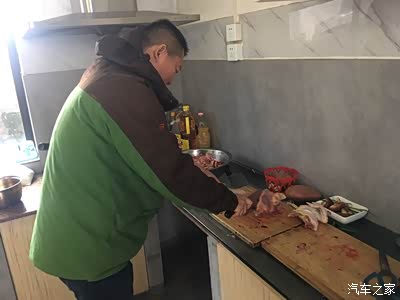比我早到的兴斌已经开始动手斩鸡了!今天我们喝鸡汤吃饺子!