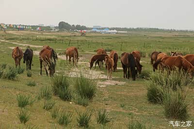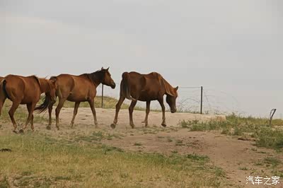 马队过路,这种情形在过了省际通道后就经常遇到。羊群过路,牛群过路,马队散步,它们根本对你的车不屑一顾,这些动物才是草原的主人。也给计划去草原的人提个醒,在这里千万不要赶夜路,我听当地人说之前有外地人开轿车赶夜路撞上一头牛,牛头直接插进驾驶室造成前排人员当场死亡。