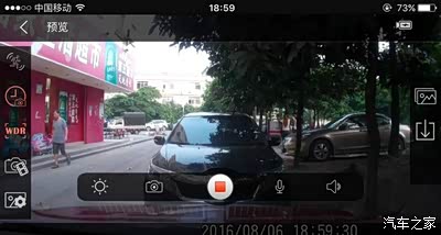 安装后的效果。打开车钥匙电源开关,记录仪自动工作,蓝灯指示闪烁,说明WiFi已经可以使用了。