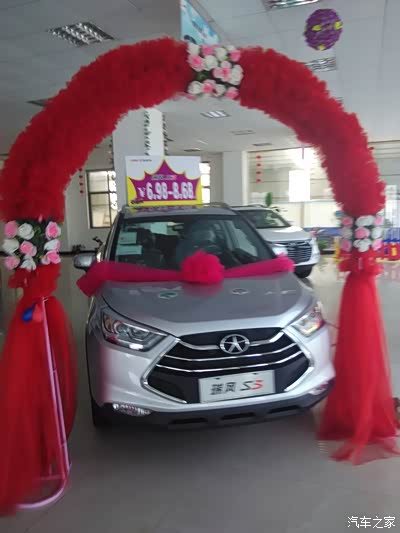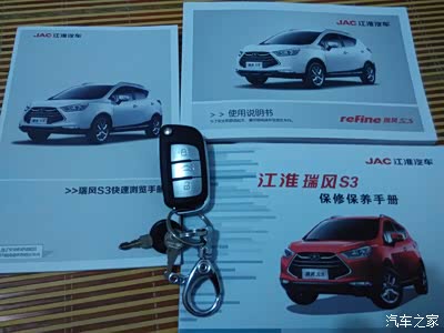 一天下班回家路上偶遇一辆黑色s3,第一眼外观和我就对上了,特别是侧面,有点像某合资的造型,以前在论坛由于很少关注江淮的,所以咋出了个这么漂亮的车,一回家就在论坛上看s3了,不看不要紧,一看吓一跳,连续几个月小型suv销量冠军!五星安全排名也第一!呵呵,中了,就它了.在网上留了联系方式,第二天就有销售人员打电话来了,约好时间就直接去店里了,销售的热情另我喜出望外,到店里左招呼右介绍,听他介绍整个车的概况,安全配置之内的,真的心动了,我直接奔小三的一款手动豪华智能型的驾驶室里坐上了,左看看右摸摸,首先是空间,一个字,大!整体内饰不错,硬塑料居多,大爱四个车门的皮饰,使车绝对高了一个档次,配置方面,真皮座椅,多功能方向盘,发动机防盗,导航,蓝牙,胎压监测,还有最重要的ESP!下车后打开后备厢,空间不错,也满足我放工具的需求,车都这样了,下一部做什么呢?当然是价格了!销售说的说的原价一分不少,送侧后膜,座套,脚垫等小装饰,软磨硬泡之后价格还是没有下来,
