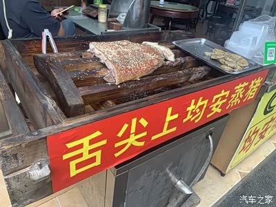 均安蒸猪。表面看,那是一盘肥瘦相间的花腩肉,上面洒着粒粒白芝麻,看不出还有其它什么调料。夹起一块放进嘴里,皮脆肉香,肥而不腻,吃过后夹齿留香,着实不错。