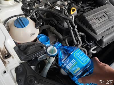 把车停在平坦的地方,然后打开发动机舱,检查一下各种油液, 防冻液,刹车油,看一下有没有减少,看来都没有问题,情况正常。只是防冻液稍微少了一点,还好我有存货,稍微加了一点,玻璃水快用完了,顺便补充了一些玻璃水,这两天干旱少雨,灰尘比较多,玻璃水也用得快。
