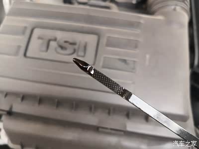 要看机油液位很简单,只需要将机油尺拔出来,然后擦干净,再将机油尺放进去,再拔出来就能看了。如果在机油尺下端的标记之间,就表示了油量是正常的。如果在标记下面,就表示机油量太少,机油太多的话就会现在机油量在标记上面。我这个已经到达最低刻度,但还算是正常的,已经跑了一年1万多公里,机油有所损耗,也属正常,看来原厂的全合成机油,还是挺给力的。