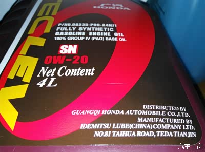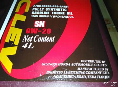 刚才发现坛子里有人问广本紫桶0W20机油,我就来传播一下正能量。