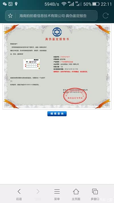 先看J家的,后面的图片也显示了,通过了防伪查询,嗯,一般人到这里就觉得这肯定是真的了。
