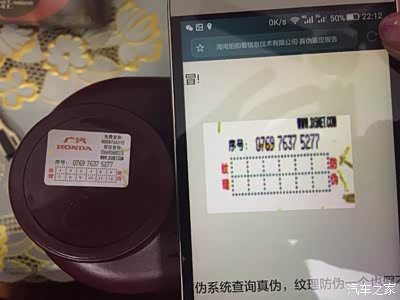 再看H家的,后面的图片也显示能通过防伪验证,一般人也会认为这不会假的了,加进发动机吧!