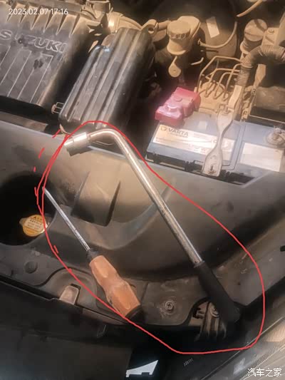 用一螺丝刀,一个12的套筒开始换节温器