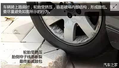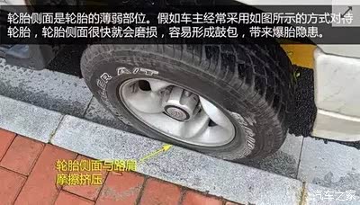 3、避免蹭胎壁 蹭胎壁,很多时候是因为开车不小心、车感不足导致的。但轮胎侧面属于轮胎的薄弱部位,磨损严重的话也会造成轮胎鼓包,带来爆胎的隐患。因此,车主在靠边停车的时候,应该多留心车辆与路肩的距离,避免蹭胎壁。