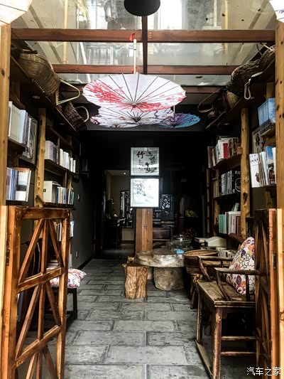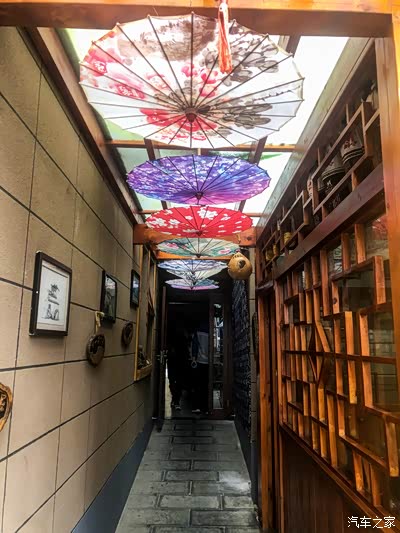 从大堂去往房间的小通道上,油纸伞的装饰似乎让我们回到了那个年代,文艺气息非常浓厚,下边的小屋是待客的地方,喝喝茶,聊聊人生趣事。