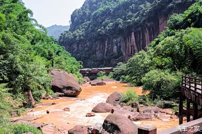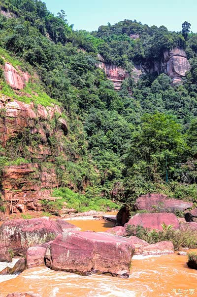 瀑布下边的河道,风景也一样充满着丹霞味道。