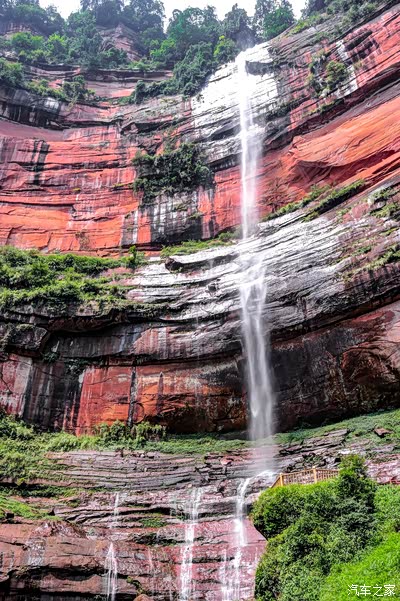瀑布谈不上气势磅礴,但是色彩丰富,美就美在丹霞地貌。