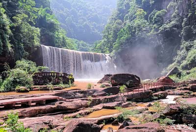 沿石径小路向瀑布走去,穿行遮天蔽日的林荫道,在峡谷深处,一年四季,不分寒暑,一天到晚,不论白昼,都飘洒着漫天的雨雾。如此魅力神奇的峡谷,在赤水数千大小的峡谷中也是绝无仅有,让这个隐藏在大山深处的深谷,披上了神秘的面纱。