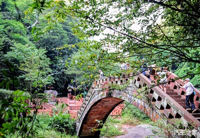 峡谷里有这样一座仿古小桥,还挺有意思。