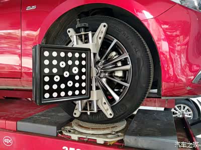 师傅开始安装做四轮定位的工具,听说更换四个轮毂最好是打一个四轮定位,没关系,反正也不算贵。。。