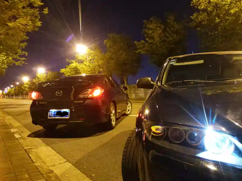 其实早在16年的时候我就有了换车的打算 那时候开的是比亚迪FO,不得不说微型车在城市当中通勤、停车真是太方便了~只是后来中了马自达的毒,天天心心念念的想换台2.3的马六轿跑。偶然某一天我在网上联系上了一台2.3手动档的轿跑车主”潘子‘ 当天晚上就约潘子出来试驾了他的车。那种纯粹的操控真的是放在现在的车很难再找到了,只是无奈当时才步入社会还没有那么多钱去收他的车,只得含泪放弃 但是马自达一流的驾驶感受从次便在我的内心深处种下了草。。。 后来买了睿翼后第一时间把潘子约出来我们拍了一组合照。。。