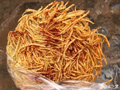 最后还是没有勇气吃虫子,买了这个充饥。这个不是虫子,这个是土豆饼,这里路边都会有卖这个的,可能是普者黑的棉花糖吧,加了辣子还挺解饿