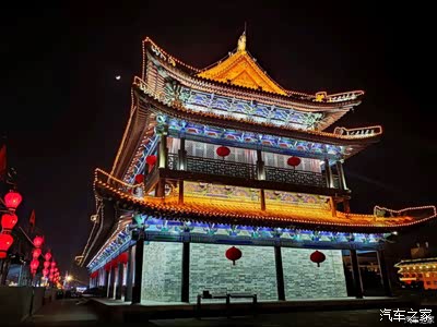 选择在傍晚登城墙,既能看到白天的景象,也能看到在城墙上俯瞰西安夜景。