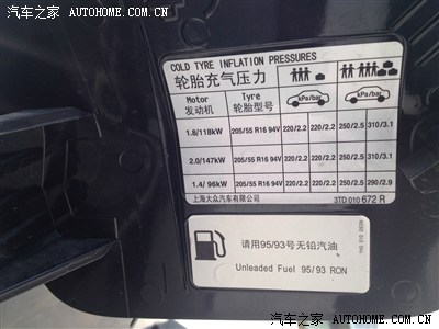 油箱盖上的提示,轮胎气压