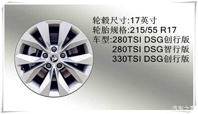 280TSI DSG前行版、280TSI DSG智行版和330TSI DSG创行版3款车型配备的是这款17英寸轮毂,