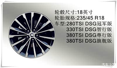 280TSI DSG冠军版、330TSI DSG智行版、380TSI DSG尊行版和380TSI DSG旗舰版4款车型配备