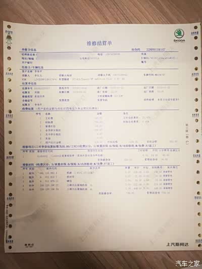 机油是用的全合成机油(6L,实际使用5.5L),总计保养费用是919元,用积分抵扣334元,再折扣后实际收561元(561元是单次免费保养额度),实际花费现金0元。