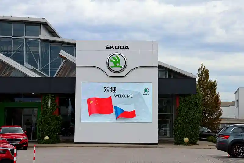 到达斯柯达汽车博物馆后,首先映入眼帘的就是一面欢迎的屏幕,这个镇楼太合适了!