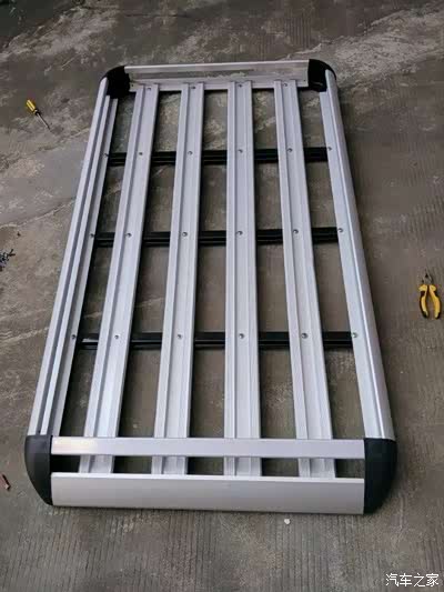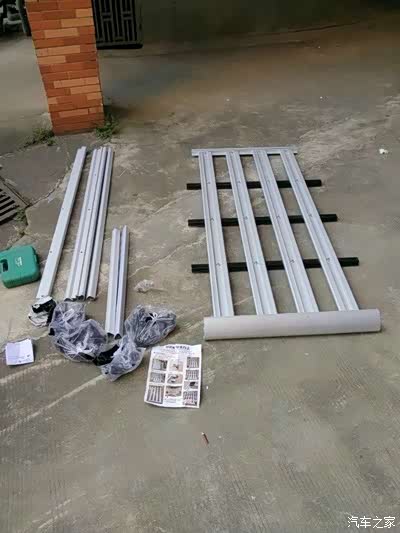 买来的行李架,自己装,其实很简单,黑色的是三条主要受理横杆,四条主板加上四条外框就算完成了