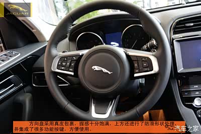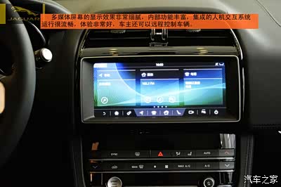 内饰方面,捷豹家族化的内饰在运动氛围的营造上更为突出,同时这个价位的豪华感营造得相当到位。中控上方,两侧车门版扶手以及中央扶手箱等区域都采用皮质包裹,再辅以精细的缝线,很是彰显质感,中控区域的按键设计简洁直观,更偏重实用便利性和行车安全。值得一提的是虽然中控有一块大屏,但多媒体音量调节,前后车窗加热以及空调调节等最基本最常用的功能都被独立出来,做成实体按键,这点很赞。